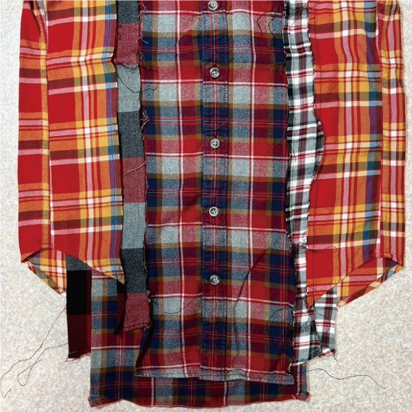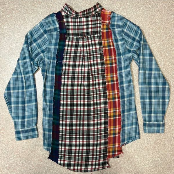 夏以外の3シーズン、長く使えるということもあり汎用性の高いシャツとして重宝しますが、そんなネルシャツを大胆にも肩で縦に裁断し、それぞれのパーツをドッキングしました!