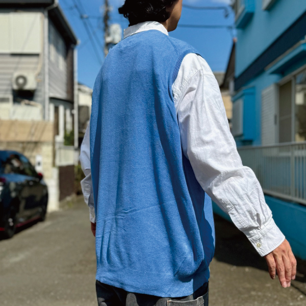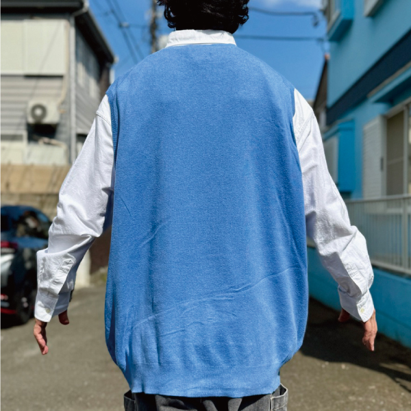 ニットベストに相性抜群な襟付きシャツはもちろん、カットソーやトレーナー、パーカーなどを合わせていただいても、様になる着こなしをお楽しみいただけます!