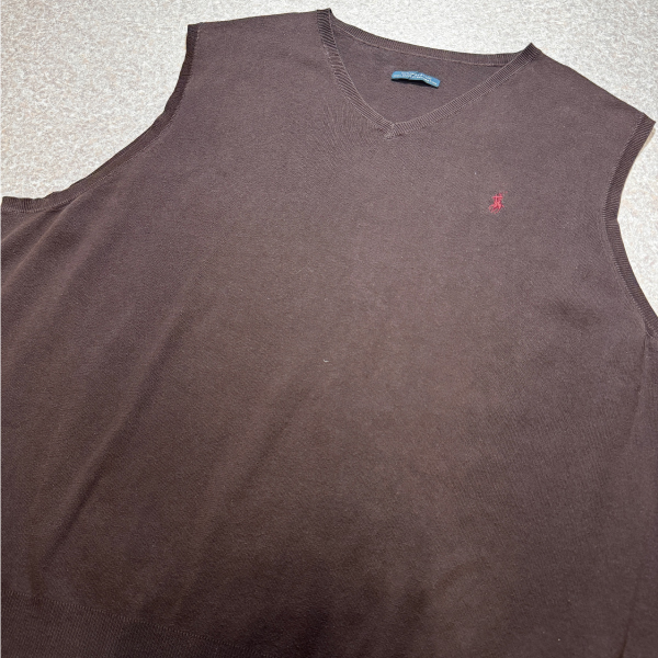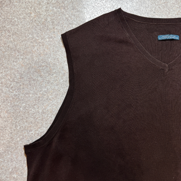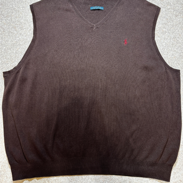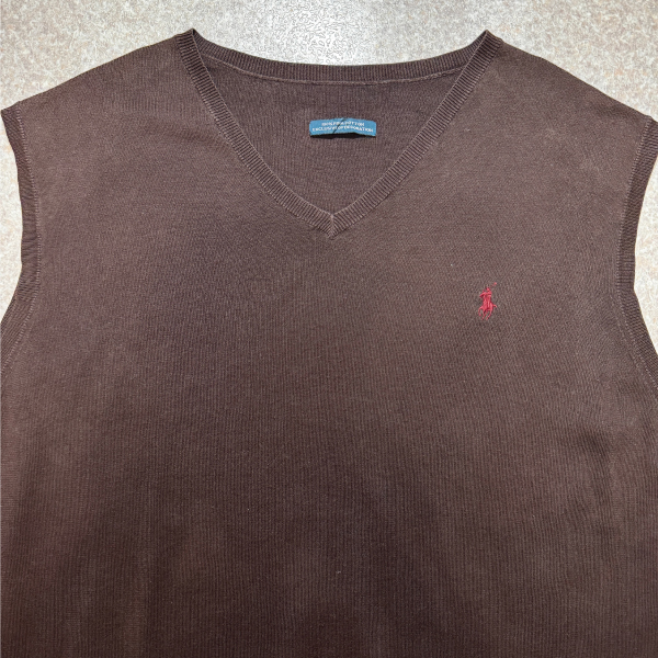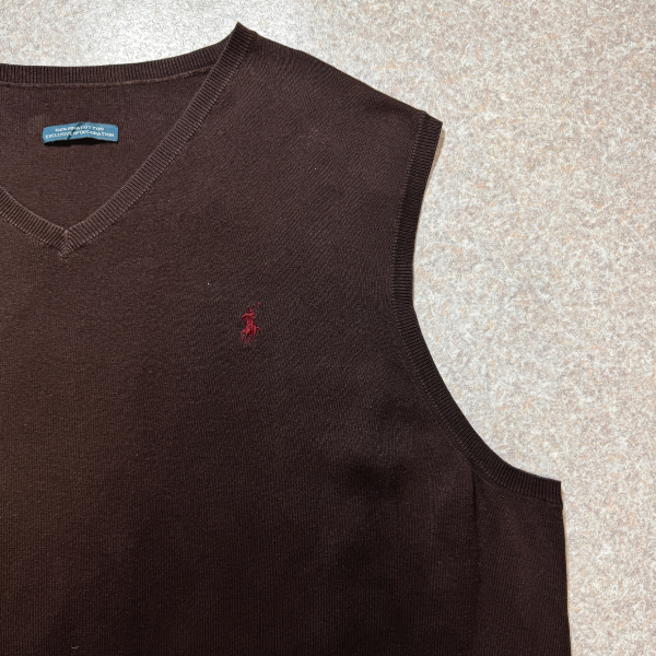 「POLO RALPH LAUREN(ポロラルフローレン)」90s 00s 10s 20s Lサイズ相当 ピマコットン チョコレートブラウン ポニー刺繍 ニット ベスト [2516004]