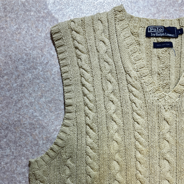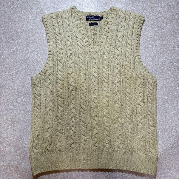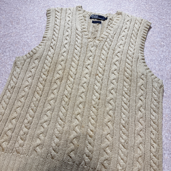 「Polo by Ralph Lauren (ポロラルフローレン)」90s 00s 10s Lサイズ コットン 生成り ケーブル編み ニット ベスト [2516005]