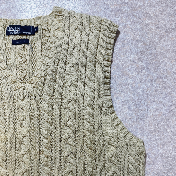 「Polo by Ralph Lauren (ポロラルフローレン)」90s 00s 10s Lサイズ コットン 生成り ケーブル編み ニット ベスト