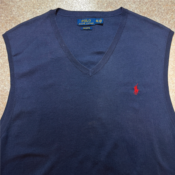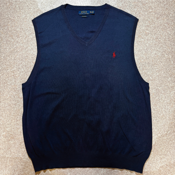 「POLO RALPH LAUREN(ポロラルフローレン)」10s 20s XXL TTGサイズ ピマコットン ネイビー ポニー刺繍 ニット ベスト [2516008]
