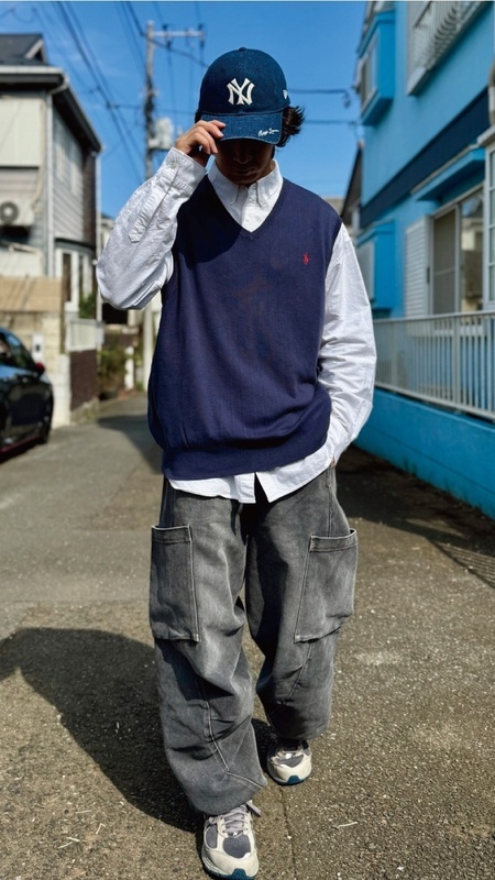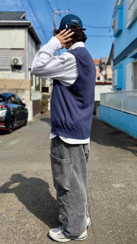 ニットベストに相性抜群な襟付きシャツはもちろん、カットソーやトレーナー、パーカーなどを合わせていただいても、様になる着こなしをお楽しみいただけます!