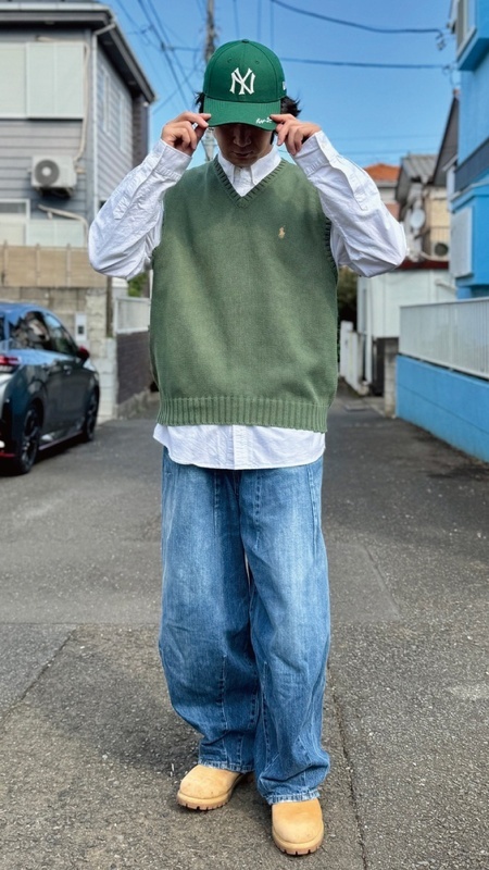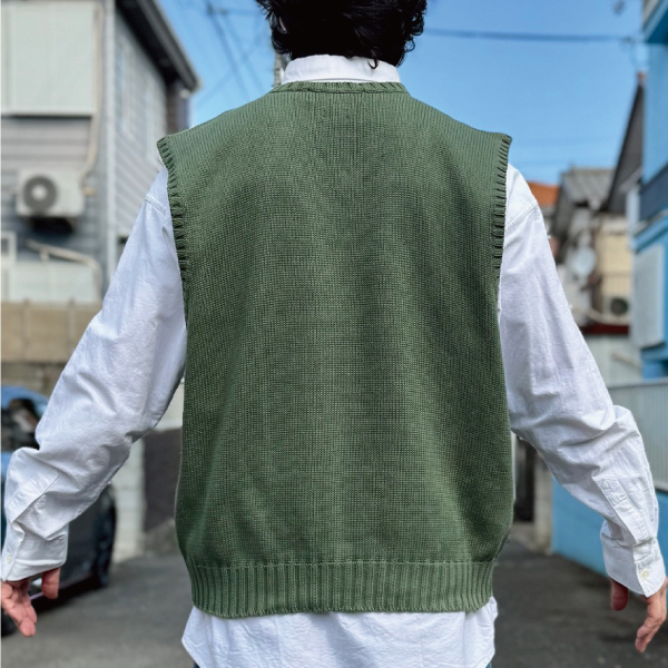 ニットベストに相性抜群な襟付きシャツはもちろん、カットソーやトレーナー、パーカーなどを合わせていただいても、様になる着こなしをお楽しみいただけます!