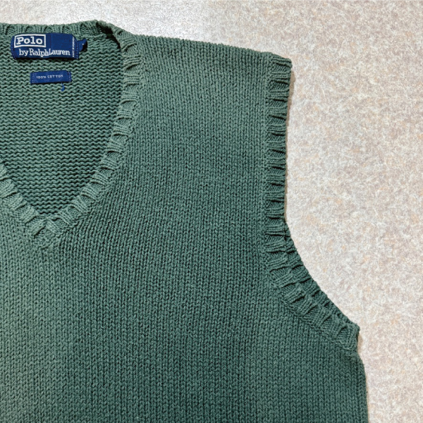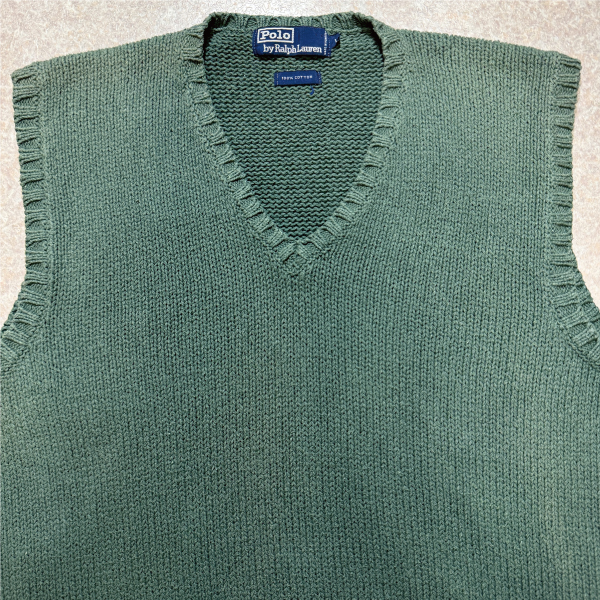 「Polo by Ralph Lauren (ポロラルフローレン)」90s 00s 10s Lサイズ コットン ダスティグリーン ローゲージ ニット ベスト