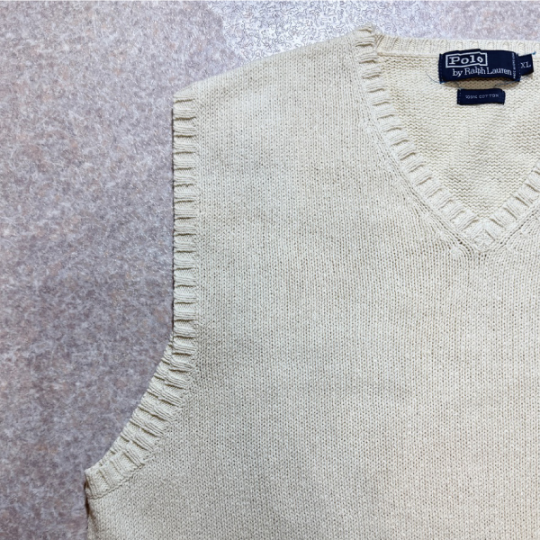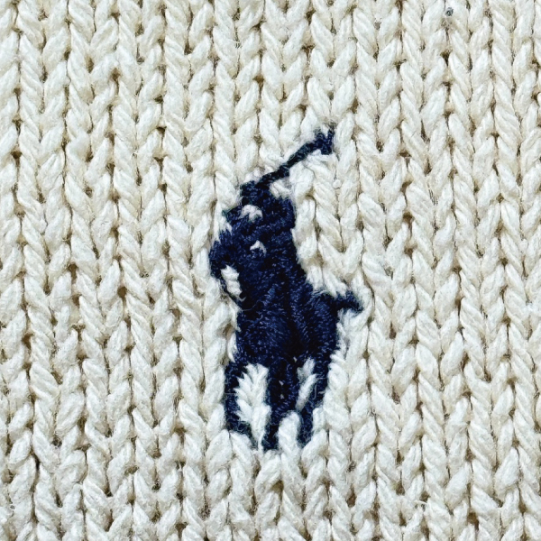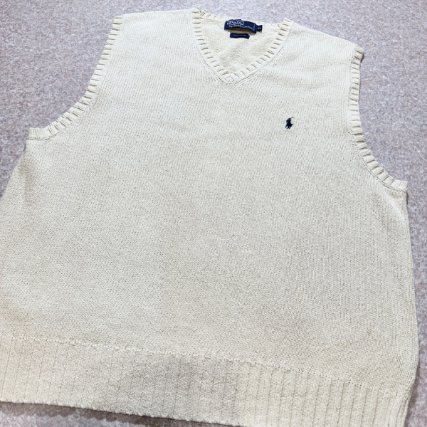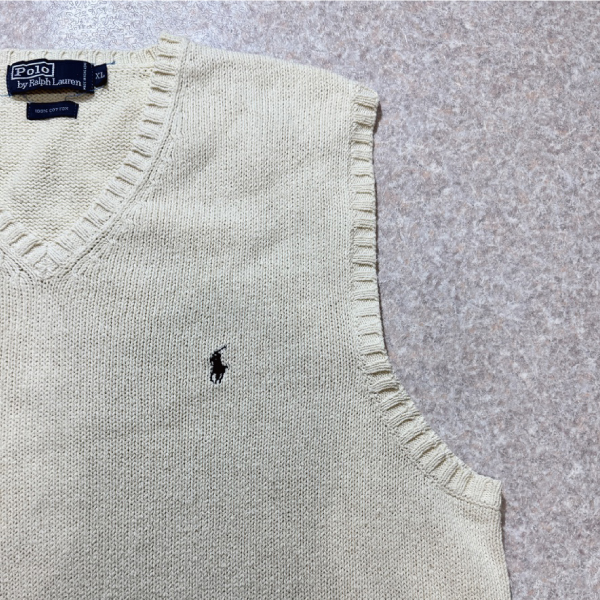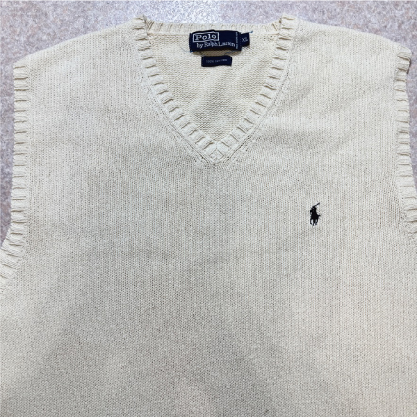 「Polo by Ralph Lauren (ポロラルフローレン)」90s 00s 10s XLサイズ コットン オフホワイト ポニー刺繍 ローゲージ ニット ベスト [2516018]