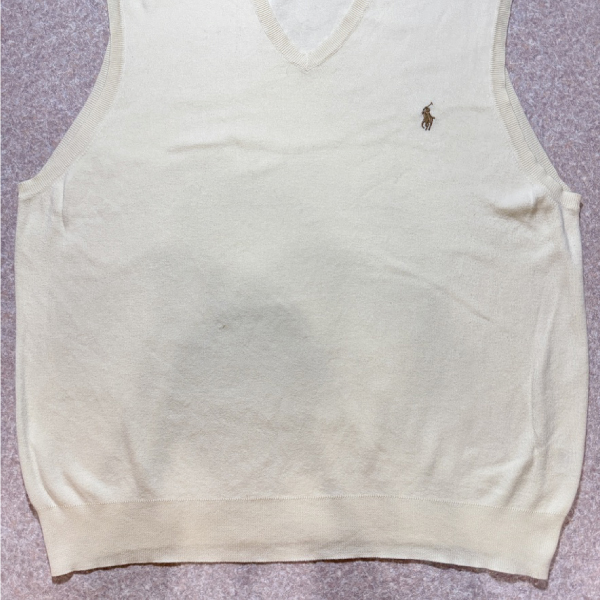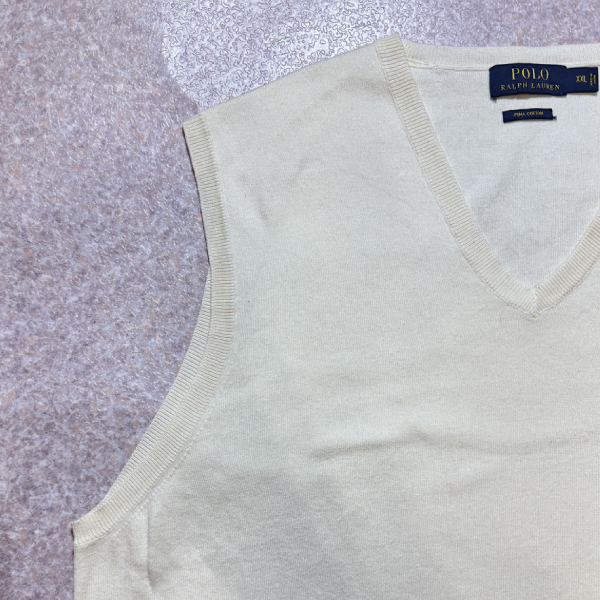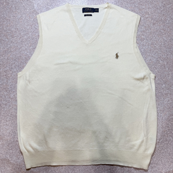 「POLO RALPH LAUREN(ポロラルフローレン)」10s 20s XXLサイズ ピマコットン オフホワイト ポニー刺繍 ニット ベスト