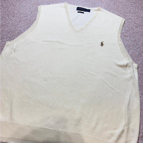「POLO RALPH LAUREN(ポロラルフローレン)」10s 20s XXLサイズ ピマコットン オフホワイト ポニー刺繍 ニット ベスト [2516019]