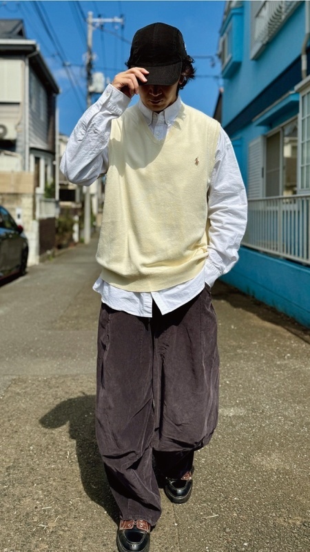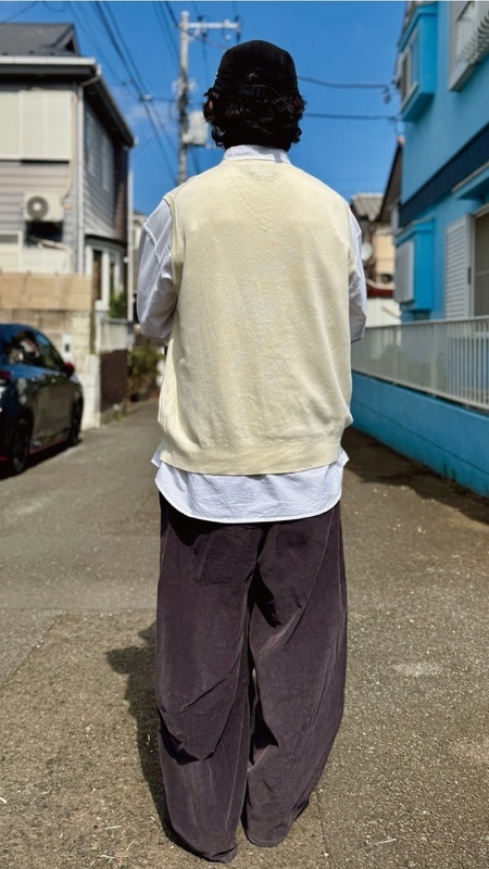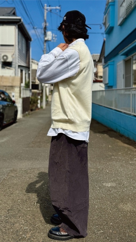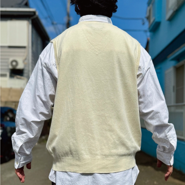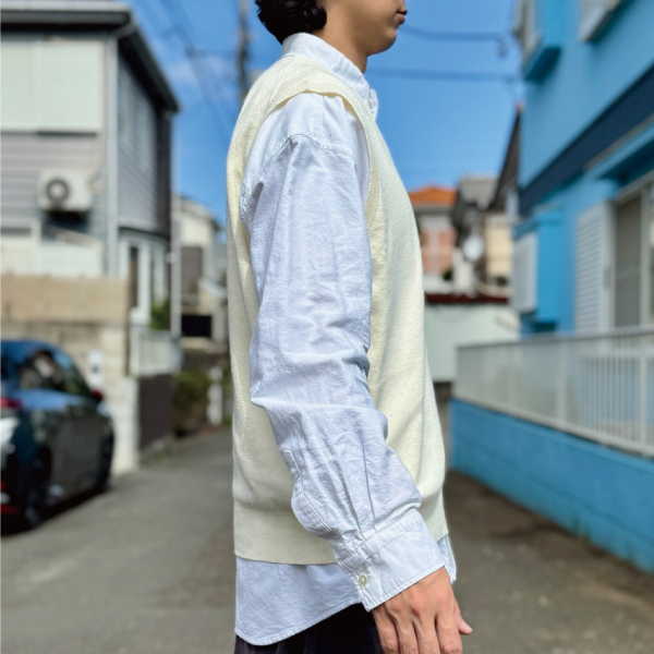 ニットベストに相性抜群な襟付きシャツはもちろん、カットソーやトレーナー、パーカーなどを合わせていただいても、様になる着こなしをお楽しみいただけます!