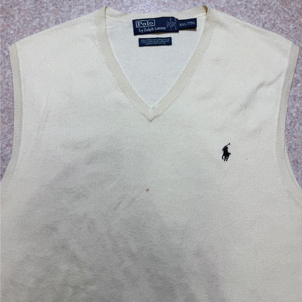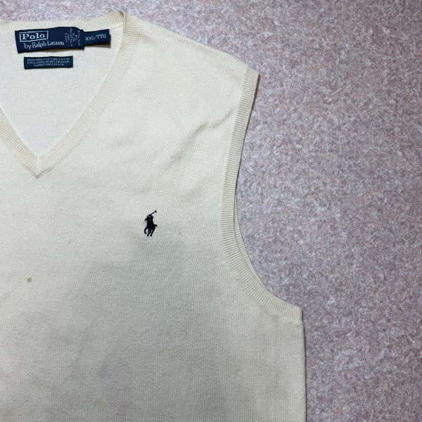 「Polo by Ralph Lauren (ポロラルフローレン)」90s 00s 10s XXL/TTGサイズ ピマコットン オフホワイト ポニー刺繍 ニット ベスト [2516026]