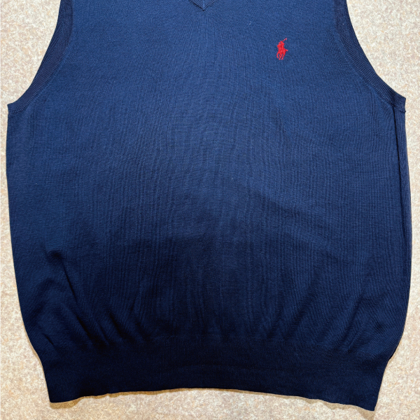 「POLO RALPH LAUREN(ポロラルフローレン)」10s 20s XLサイズ ピマコットン ネイビー ポニー刺繍 ニット ベスト [2516028]