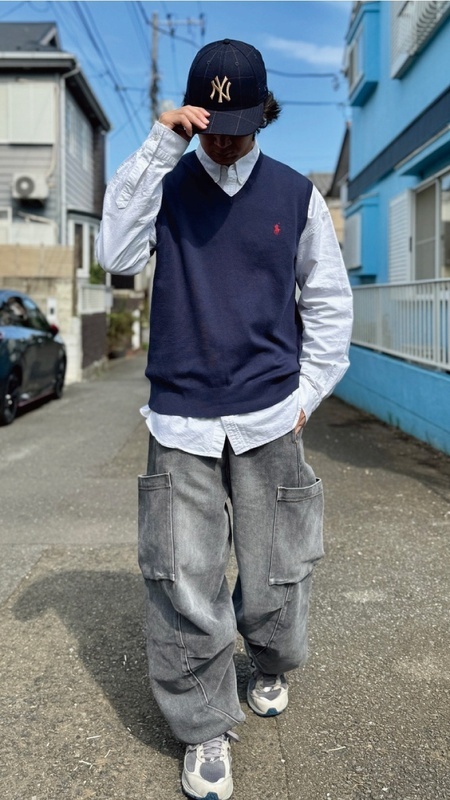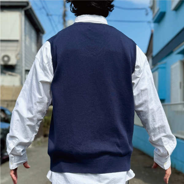 ニットベストに相性抜群な襟付きシャツはもちろん、カットソーやトレーナー、パーカーなどを合わせていただいても、様になる着こなしをお楽しみいただけます!