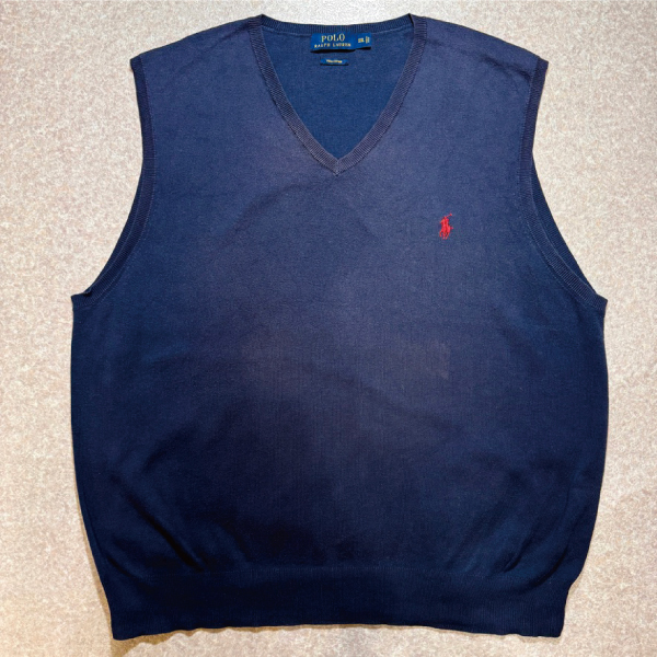 「POLO RALPH LAUREN(ポロラルフローレン)」10s 20s XXLサイズ ピマコットン ネイビー ポニー刺繍 ニット ベスト [2516030]