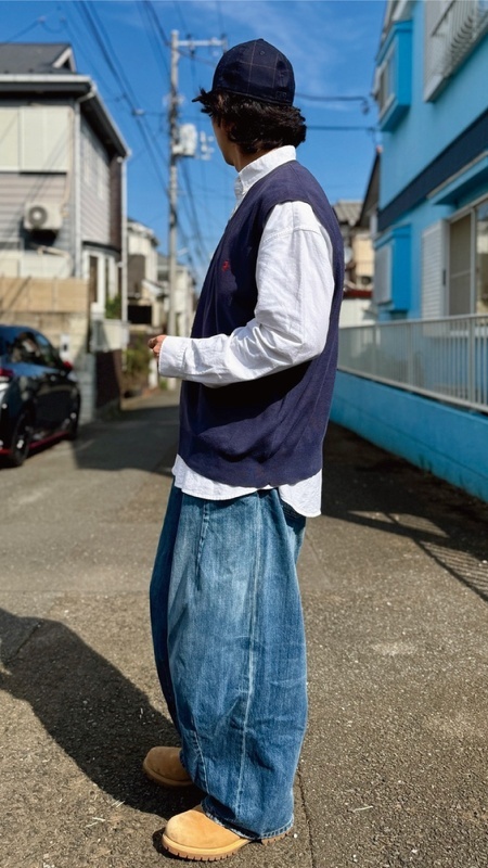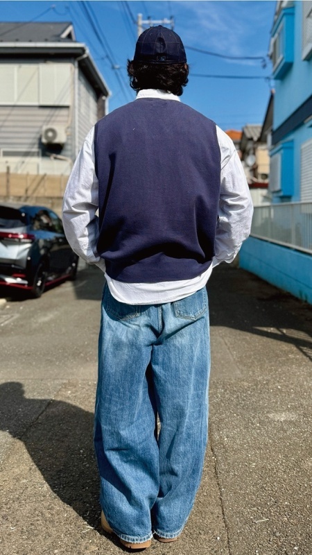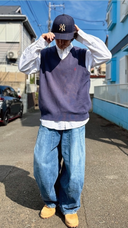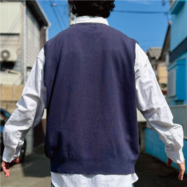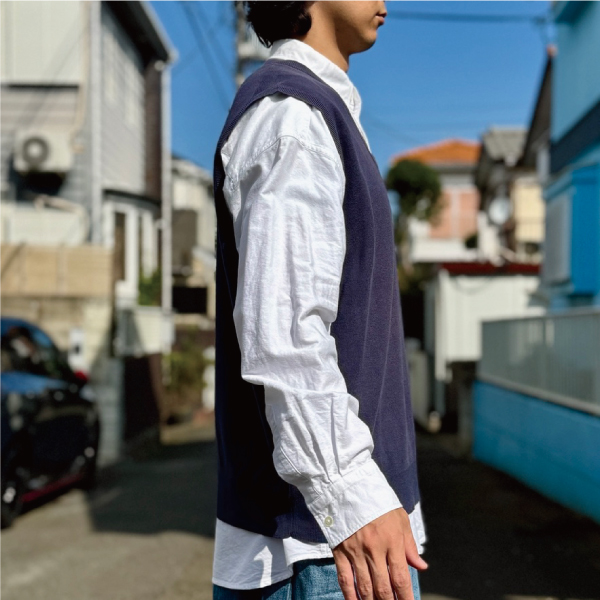 ニットベストに相性抜群な襟付きシャツはもちろん、カットソーやトレーナー、パーカーなどを合わせていただいても、様になる着こなしをお楽しみいただけます!