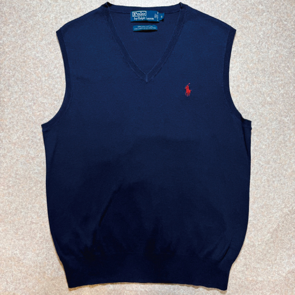 「Polo by Ralph Lauren (ポロラルフローレン)」90s 00s 10s Sサイズ ピマコットン ネイビー ポニー刺繍 ニット ベスト [2516035]