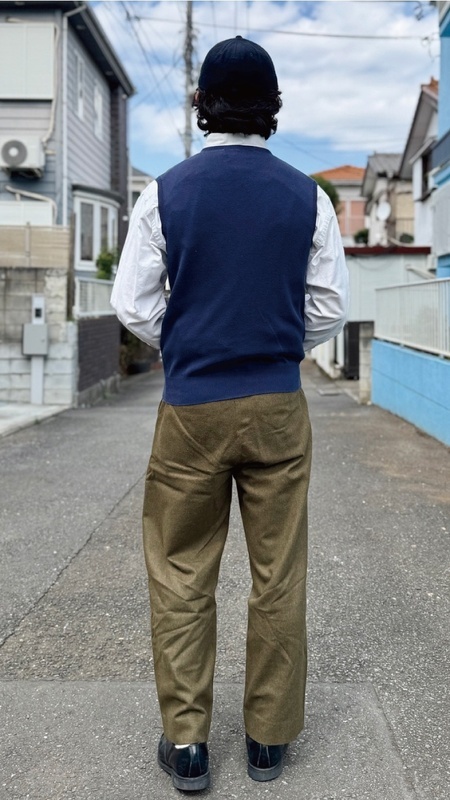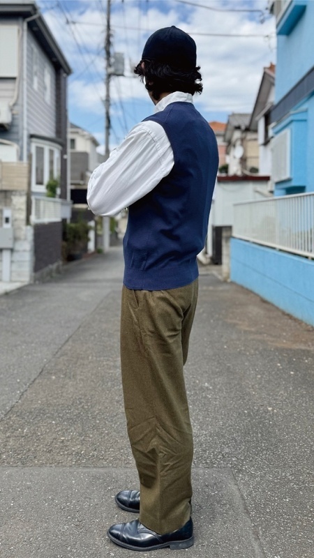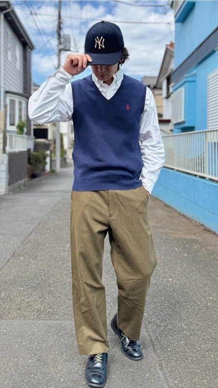 ニットベストに相性抜群な襟付きシャツはもちろん、カットソーを合わせていただいても、様になる着こなしをお楽しみいただけます!