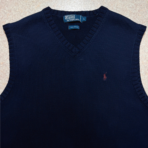 「Polo by Ralph Lauren (ポロラルフローレン)」90s 00s 10s Lサイズ コットン ネイビー ポニー刺繍 ローゲージ ニット ベスト