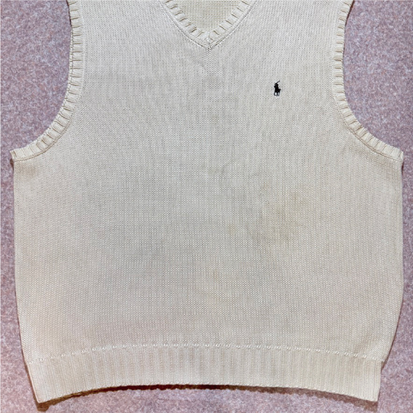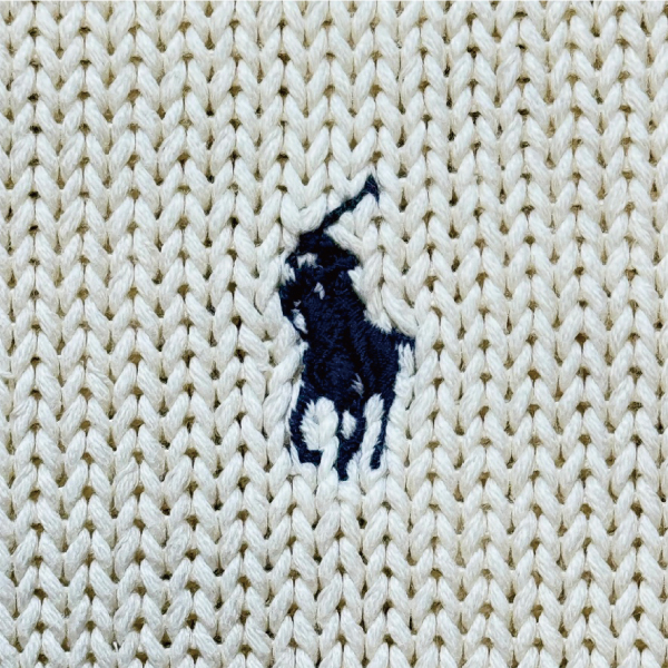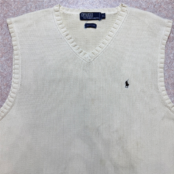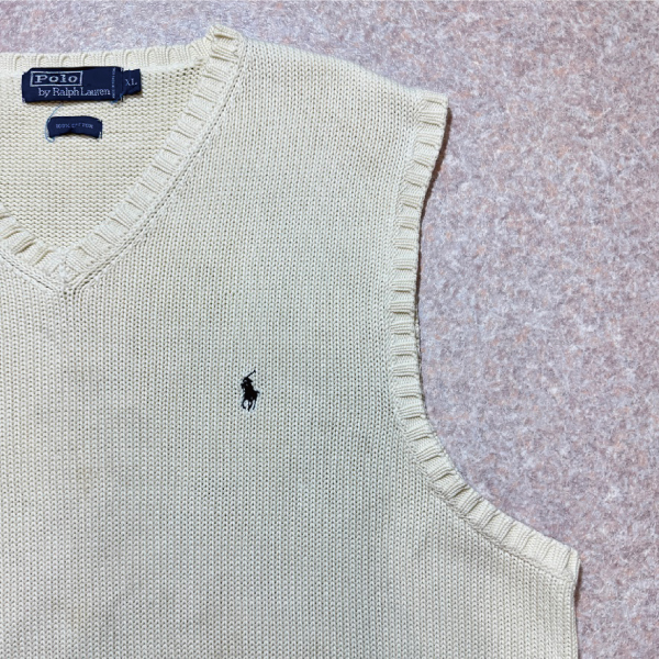 「Polo by Ralph Lauren (ポロラルフローレン)」90s 00s 10s XLサイズ コットン オフホワイト ポニー刺繍 ローゲージ ニット ベスト [2516042]