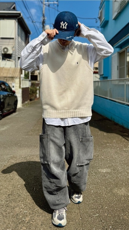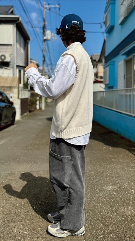 ニットベストに相性抜群な襟付きシャツはもちろん、カットソーやトレーナー、パーカーなどを合わせていただいても、様になる着こなしをお楽しみいただけます!