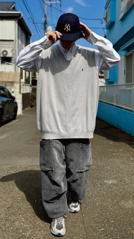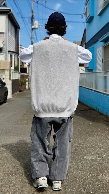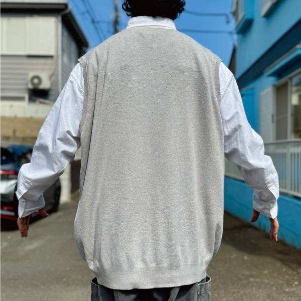 ニットベストに相性抜群な襟付きシャツはもちろん、カットソーやトレーナー、パーカーなどを合わせていただいても、様になる着こなしをお楽しみいただけます!