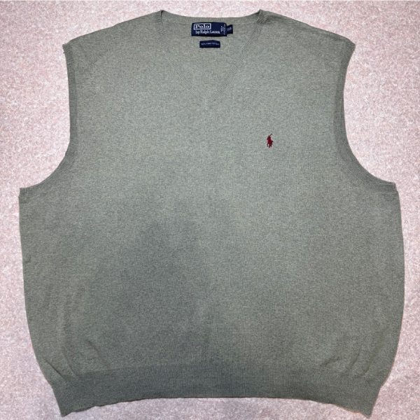 「Polo by Ralph Lauren (ポロラルフローレン)」90s 00s 10s 3XBサイズ ピマコットン オリーブ ポニー刺繍 ニット ベスト [2516065]