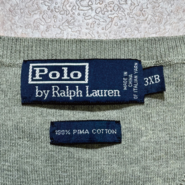 「Polo by Ralph Lauren (ポロラルフローレン)」90s 00s 10s 3XBサイズ ピマコットン オリーブ ポニー刺繍 ニット ベスト