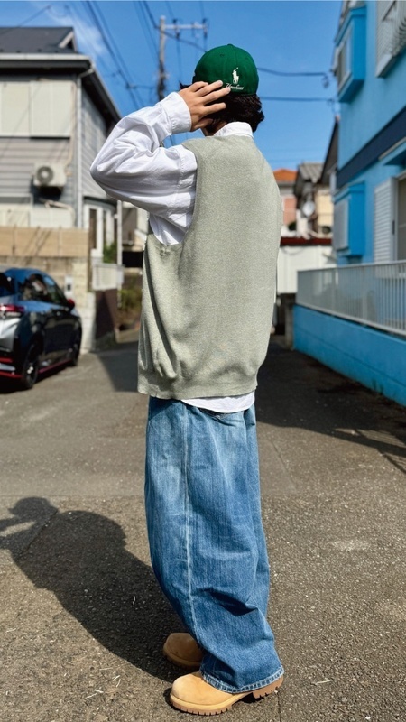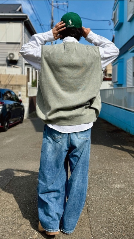 ニットベストに相性抜群な襟付きシャツはもちろん、カットソーやトレーナー、パーカーなどを合わせていただいても、様になる着こなしをお楽しみいただけます!