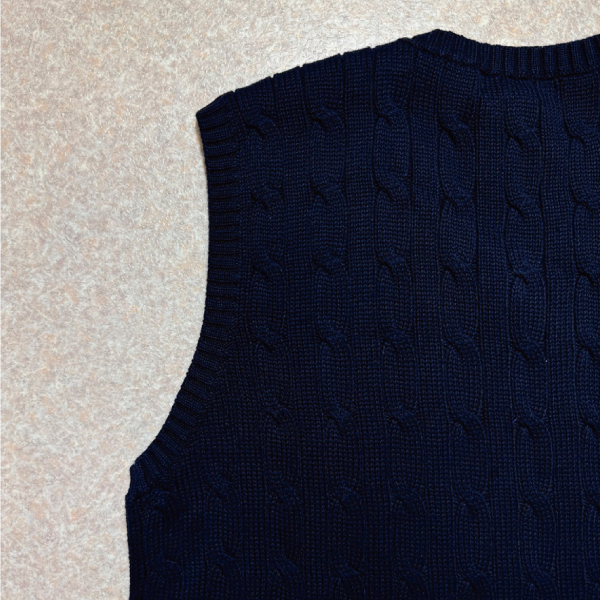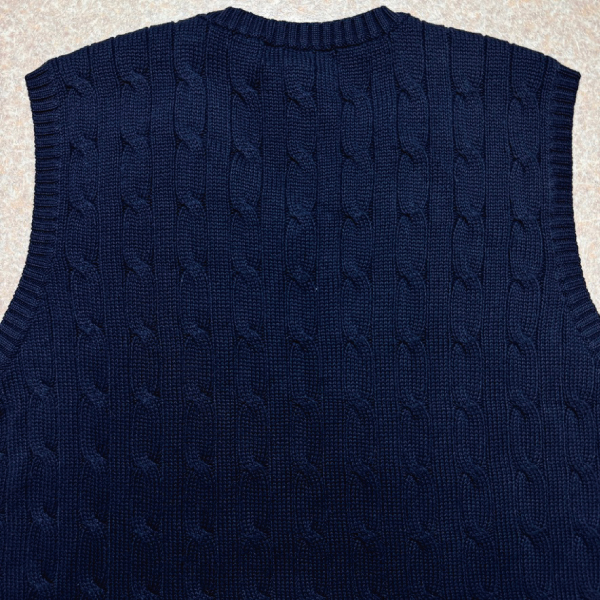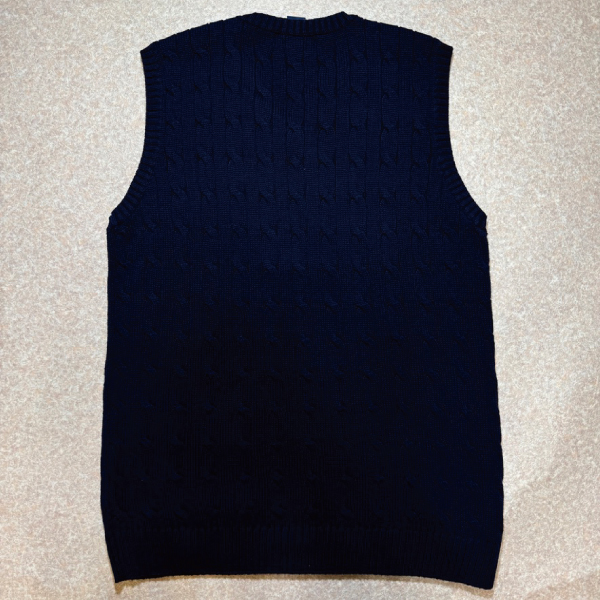 「Polo by Ralph Lauren (ポロラルフローレン)」90s 00s 10s ボーイズ L(16/18) Mサイズ相当 コットン ネイビー ケーブル編み ポニー刺繍 ニット ベスト [2516050]