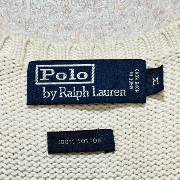 「Polo by Ralph Lauren (ポロラルフローレン)」90s 00s 10s Mサイズ コットン オフホワイト ポニー刺繍 ローゲージ ニット ベスト