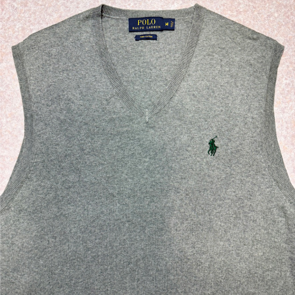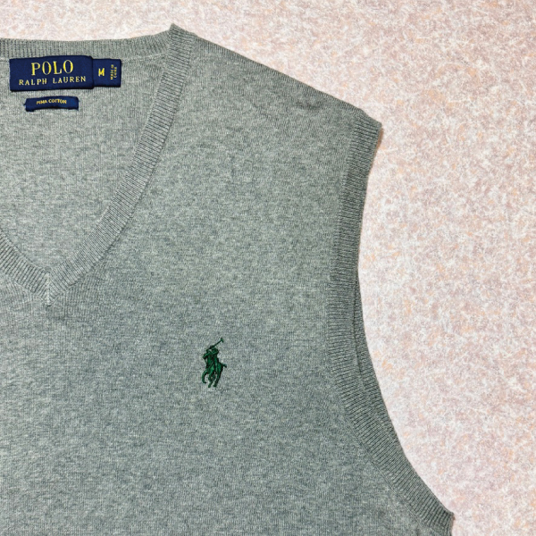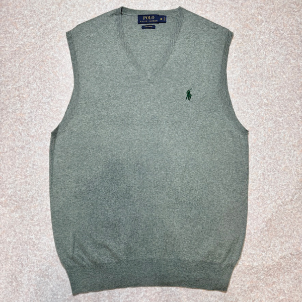 「POLO RALPH LAUREN(ポロラルフローレン)」10s 20s Mサイズ ピマコットン ライトグレー ポニー刺繍 ニット ベスト