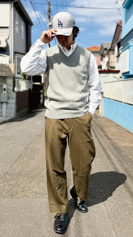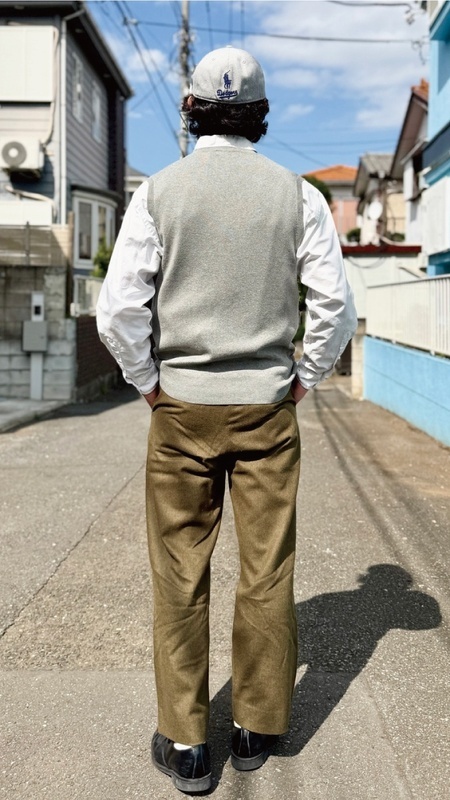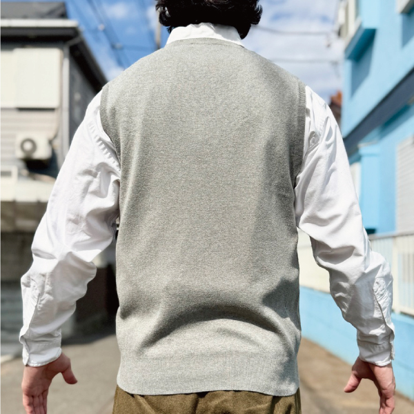 ニットベストに相性抜群な襟付きシャツはもちろん、カットソーを合わせていただいても、様になる着こなしをお楽しみいただけます!