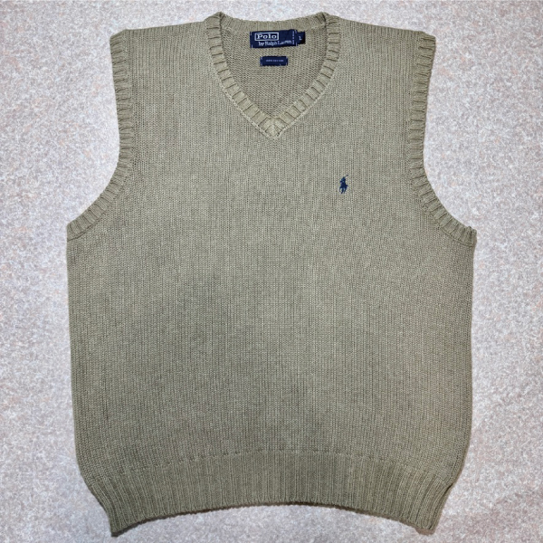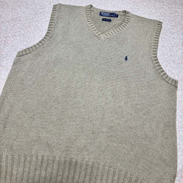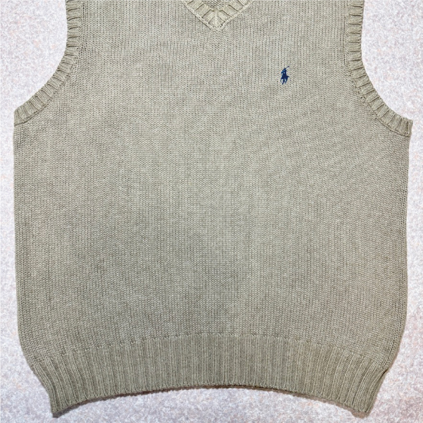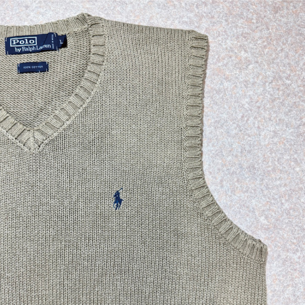 「Polo by Ralph Lauren (ポロラルフローレン)」90s 00s 10s Lサイズ コットン グレージュ ポニー刺繍 ローゲージ ニット ベスト [2516058]
