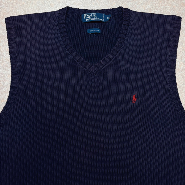 「Polo by Ralph Lauren (ポロラルフローレン)」90s 00s 10s XLサイズ コットン ネイビー ポニー刺繍 ローゲージ ニット ベスト [2516062]