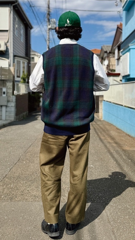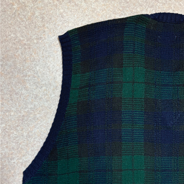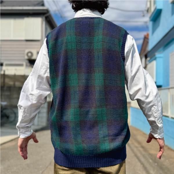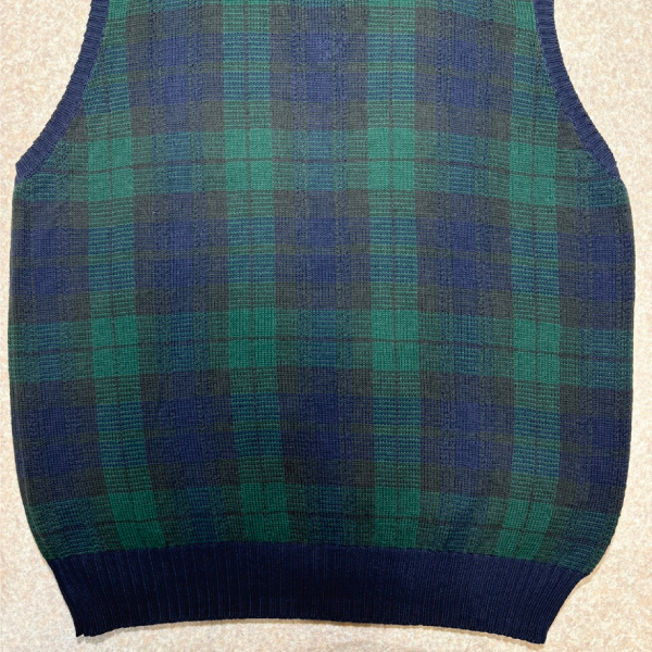 ジャケットやパンツ、マフラーなどではよく見られる定番の柄ですが、ベストでは探すと意外と見つからない、珍品!