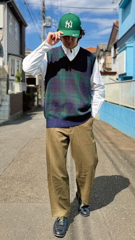 ニットベストに相性抜群な襟付きシャツはもちろん、カットソーを合わせていただいても、様になる着こなしをお楽しみいただけます!