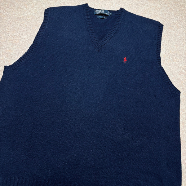 「Polo by Ralph Lauren (ポロラルフローレン)」90s 00s 10s Lサイズ コットン ネイビー ポニー刺繍 ミドルゲージ ニット ベスト [2516064]