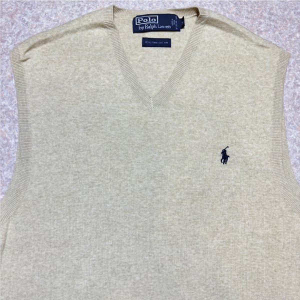 「Polo by Ralph Lauren (ポロラルフローレン)」90s 00s 10s Mサイズ ピマコットン ベージュ ポニー刺繍 ニット ベスト