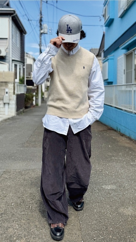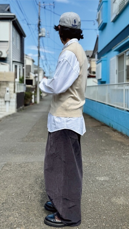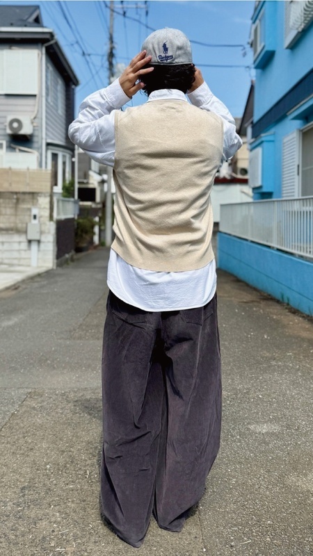 ニットベストに相性抜群な襟付きシャツはもちろん、カットソーを合わせていただいても、様になる着こなしをお楽しみいただけます!