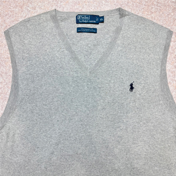 「Polo by Ralph Lauren (ポロラルフローレン)」90s 00s 10s XLサイズ ピマコットン ライトグレー ポニー刺繍 ニット ベスト