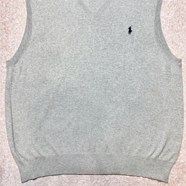 「Polo by Ralph Lauren (ポロラルフローレン)」90s 00s 10s XLサイズ ピマコットン ライトグレー ポニー刺繍 ニット ベスト [2516070]