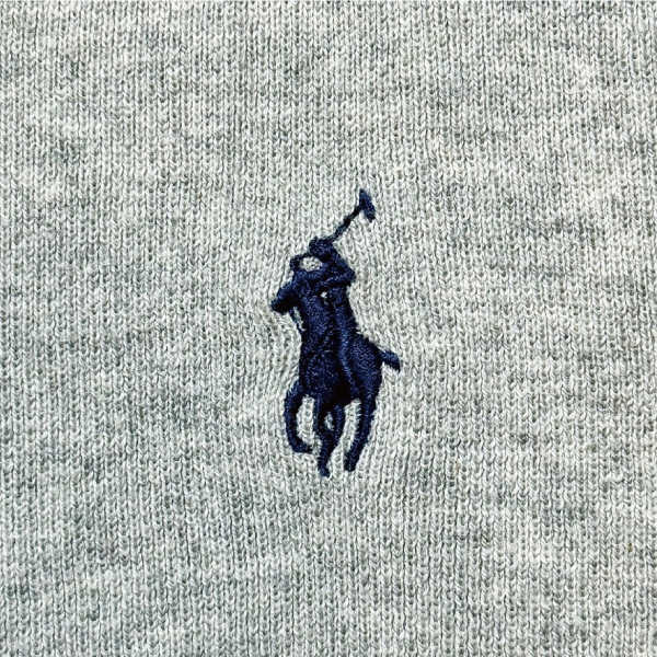 無彩色の渋めなライトグレーのボディに、上品に際立つネイビーのポニー刺繍がちょうどいいアクセントになっています!