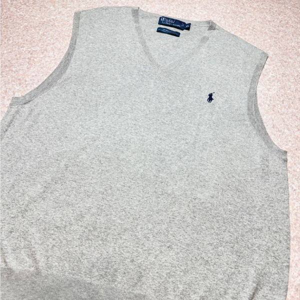 ラルフローレンのライトグレーピマコットンニットベスト!