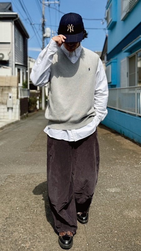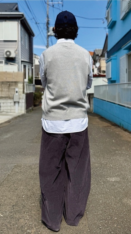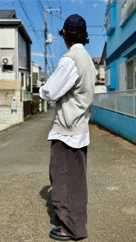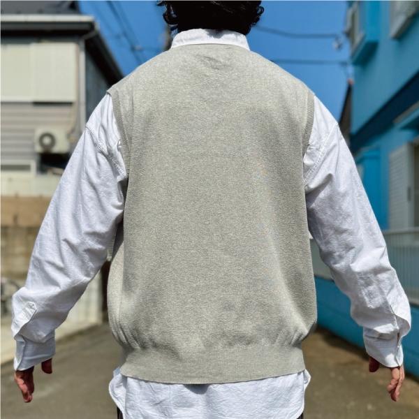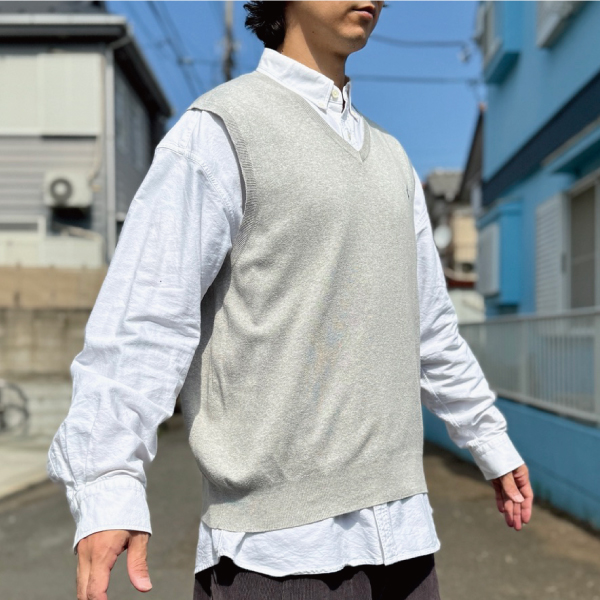 ニットベストに相性抜群な襟付きシャツはもちろん、カットソーやトレーナー、パーカーなどを合わせていただいても、様になる着こなしをお楽しみいただけます!