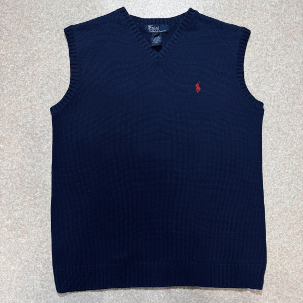 「Polo by Ralph Lauren (ポロラルフローレン)」90s 00s 10s ボーイズ Lサイズ Sサイズ相当 コットン ネイビー ポニー刺繍 ローゲージ ニット ベスト [2516073]