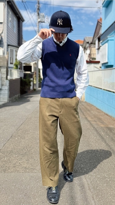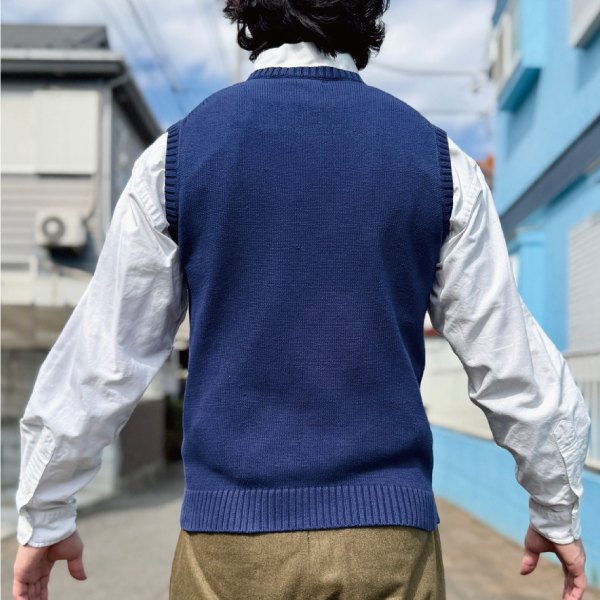 ニットベストに相性抜群な襟付きシャツはもちろん、カットソーを合わせていただいても、様になる着こなしをお楽しみいただけます!