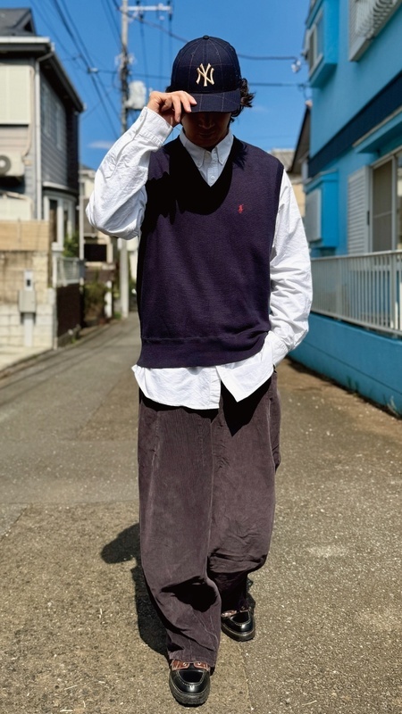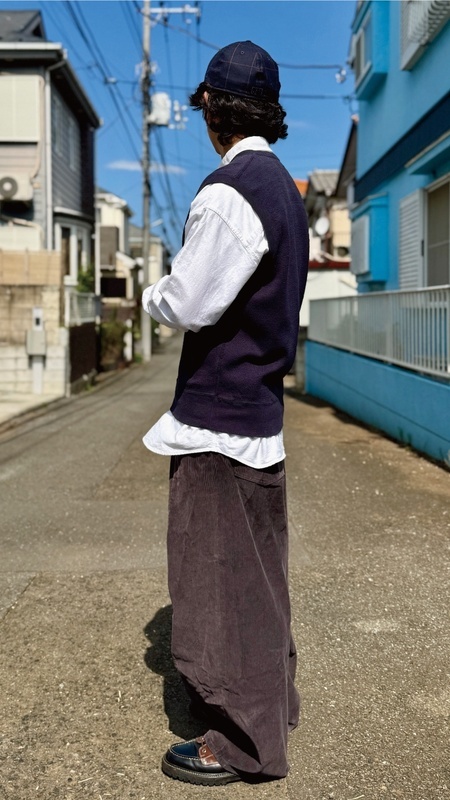 ニットベストに相性抜群な襟付きシャツはもちろん、カットソーを合わせていただいても、様になる着こなしをお楽しみいただけます!