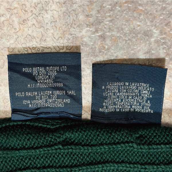 特徴的な紺色で、比較的長い間使われていたタグなので、ラルフローレンといえば"コレ"!
