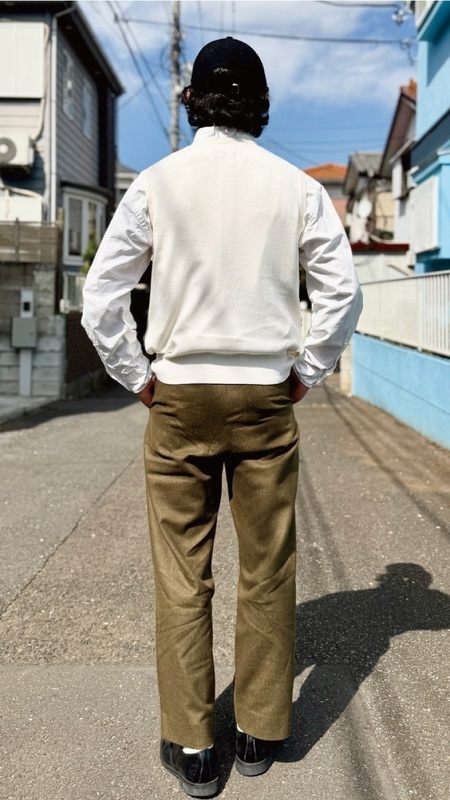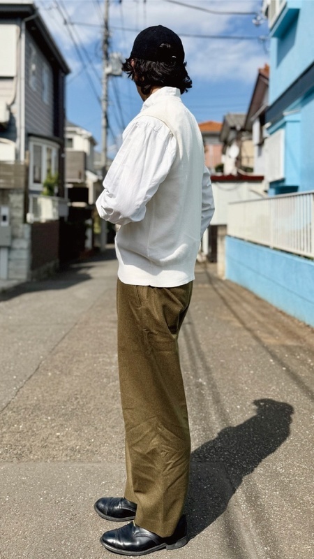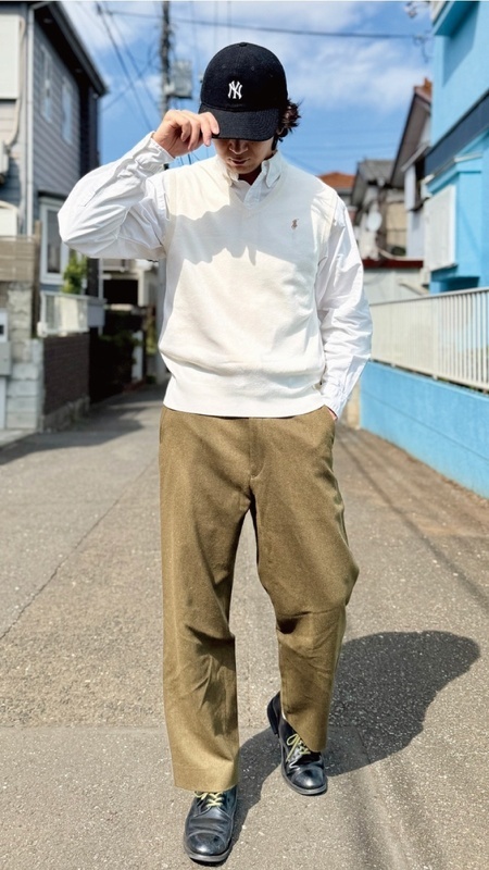 ニットベストに相性抜群な襟付きシャツはもちろん、カットソーを合わせていただいても、様になる着こなしをお楽しみいただけます!