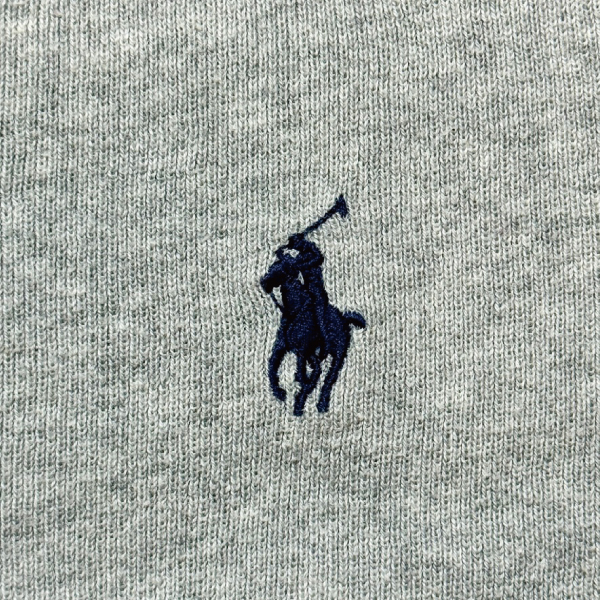 無彩色の渋めなライトグレーのボディに、上品に際立つネイビーのポニー刺繍がちょうどいいアクセントになっています!