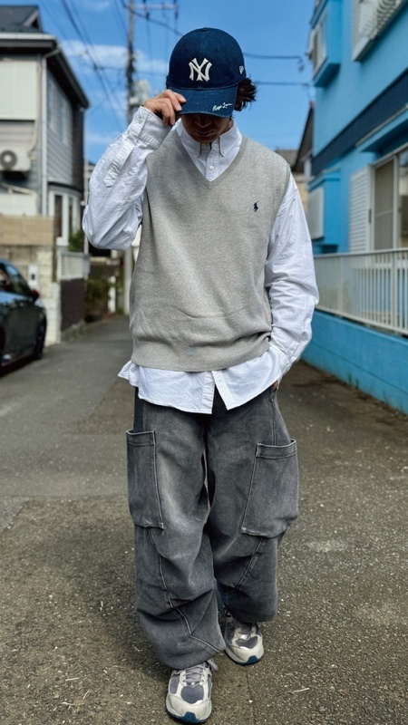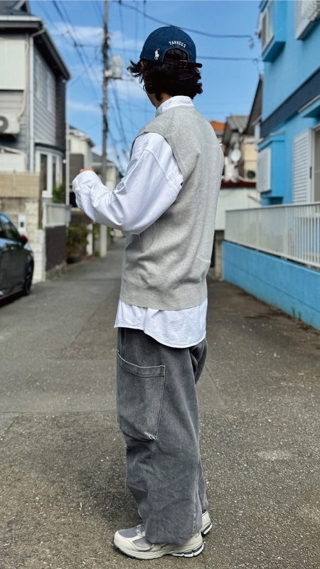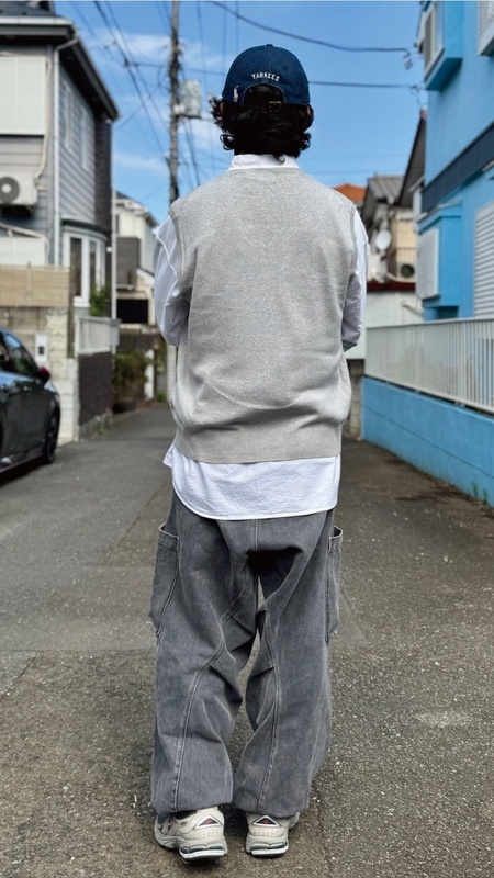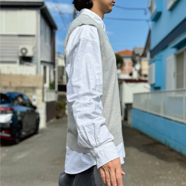 ニットベストに相性抜群な襟付きシャツはもちろん、カットソーを合わせていただいても、様になる着こなしをお楽しみいただけます!